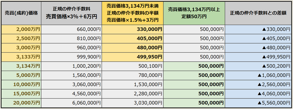 仲介⼿数料が価格に応じて半額・定額に切り替わる